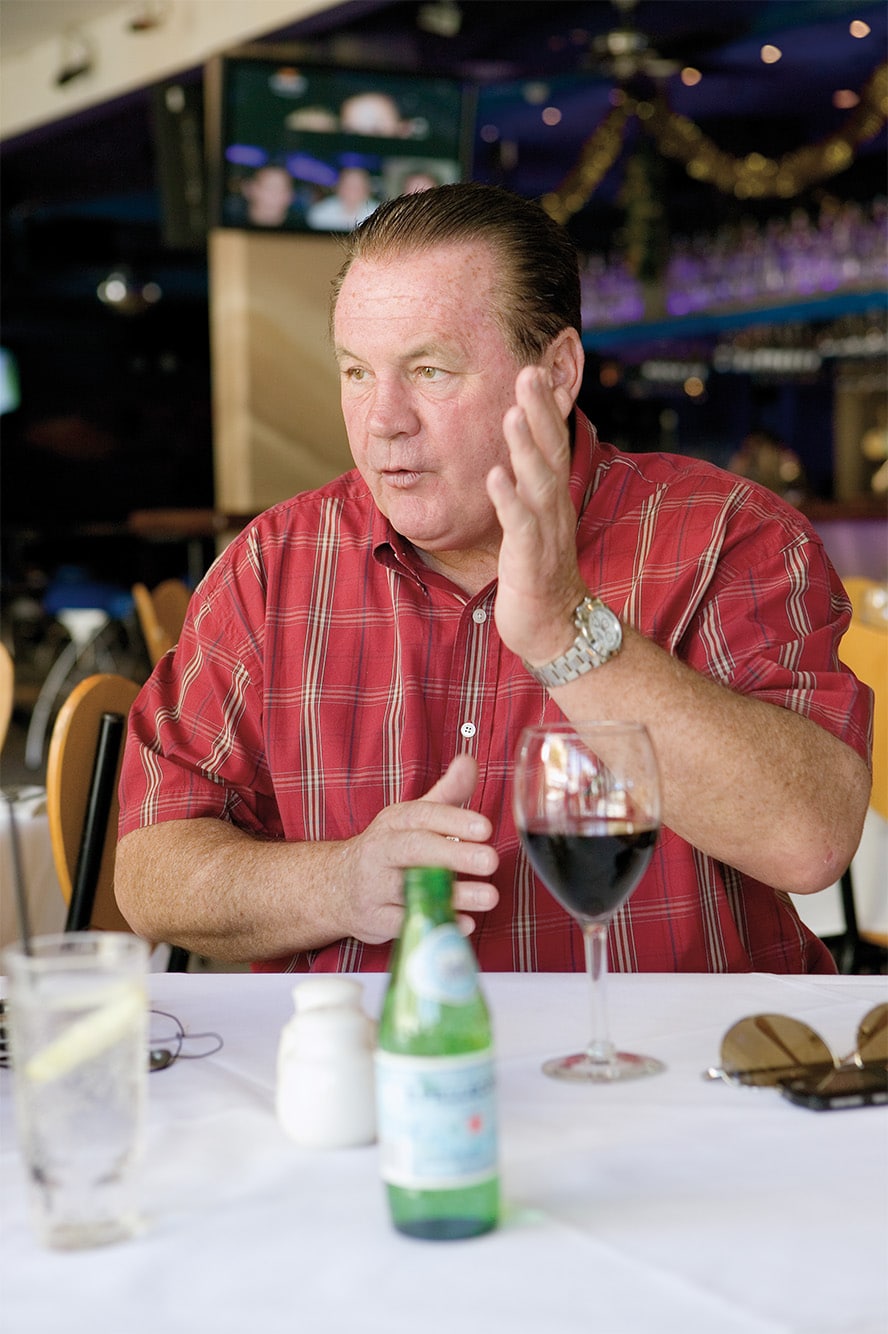 Which is appropriate, because we’re having lunch at Melba’s, a swanky restaurant and nightclub just behind the gilded beach of Surfers Paradise, where Alan lives in a waterside property with his second wife Amanda and seven-year-old twins Zara and Jack. The weather is glorious, and Alan is wearing the Gold Coast uniform of shirt and shorts. He looks healthy and relaxed as he instructs the waiter to bring a plate of oysters and a filet mignon “medium on the inside, burnt to buggery on the outside”.