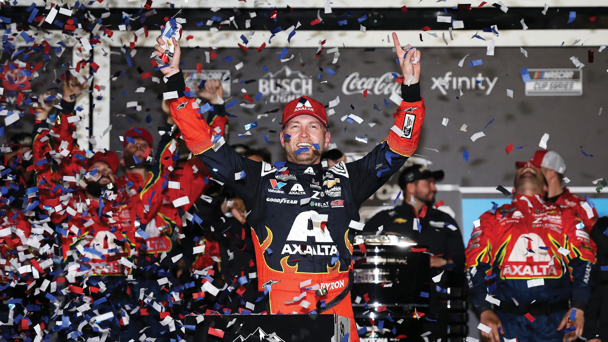 - William Byron, inset, emerged from a smoky wreck on the final lap to score a second successive Daytona 500 win. Cole Custer triggered chaos by tagging