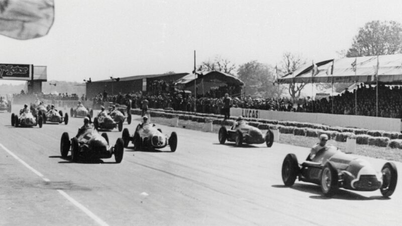 Juan Manuel Fangio at Silverstone in 1956, on his way to his 19th F1 World Championship win – and his sole victory in the British Grand Prix