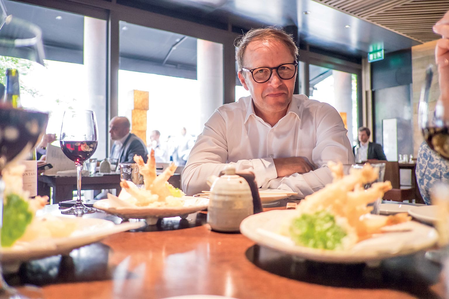 This is exceptionally good sushi. I’m following Solberg’s choices with tiger prawns and then beef. Clearly a man with good taste in grub. “I brought the chef from Subaru to my own team because he’s so good.”