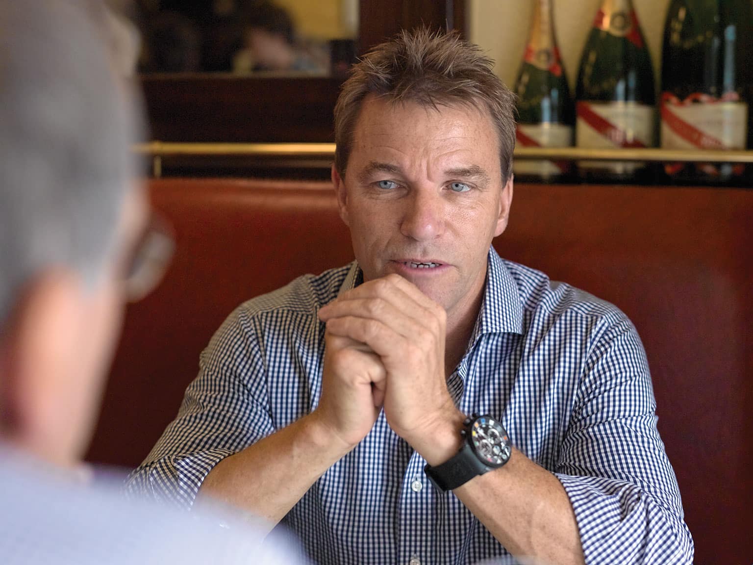 His spiky hair and craggy face with its wide grin seem unchanged by the years. He looks wiry and fit: lunch is just a salad with a slice of very rare tuna, and a glass of mineral water. As a boy he played ice hockey and football at a serious level, but racing was always his priority.