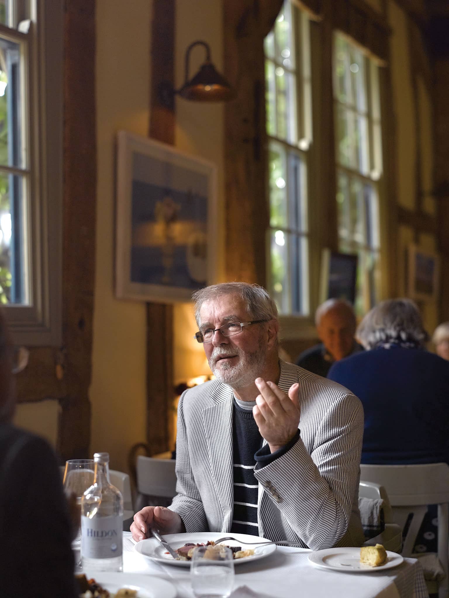 Unsurprisingly, Peter’s personal drives are eclectic. His transport to the village shop from his Suffolk home may be his 1950s grey Ferguson TE20 tractor, or his Citroën 2CV van: “One of those little crinkly boxes with a very short rear overhang.” He has two early Model A Fords, a roadster pick-up and a 1928 hot-rod that wears a Model T body to save weight. He arrives for lunch in his Fiat 500, apparently standard except it rides lower, has wider wheels and has its engine cover slightly open à la Abarth. We’re at the Leaping Hare at Stanton, adjoining the seven-acre Wyken Vineyards. It has been judged one of Britain’s 100 best restaurants and rates a mention in the Guide Michelin, and our game terrine and venison with beetroot tarte tatin does not contradict this. It’s helped on its way by a bottle of Wyken’s own Bacchus dry white.
