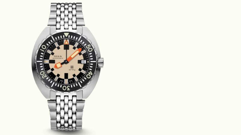 There’s now a vast line-up of Sub models in multiple dial colours and the range is far and away the brand’s bestseller – and now there’s a variation on the theme, Army, following the discovery that Doxa was called upon to supply watches to the specialist diving units of the Swiss forces during the early 1970s.