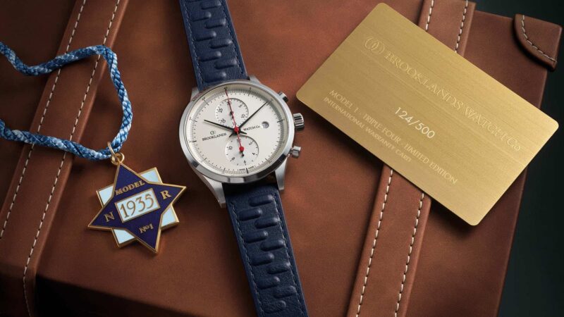 The Model 1 Triple-Four Racing Chronograph (to give it its full name) will be made in just 500 examples, each supplied in a special presentation box with an enamelled badge based on the much-coveted Brooklands Gold Star that was awarded to anyone who lapped the circuit at more than 100mph.