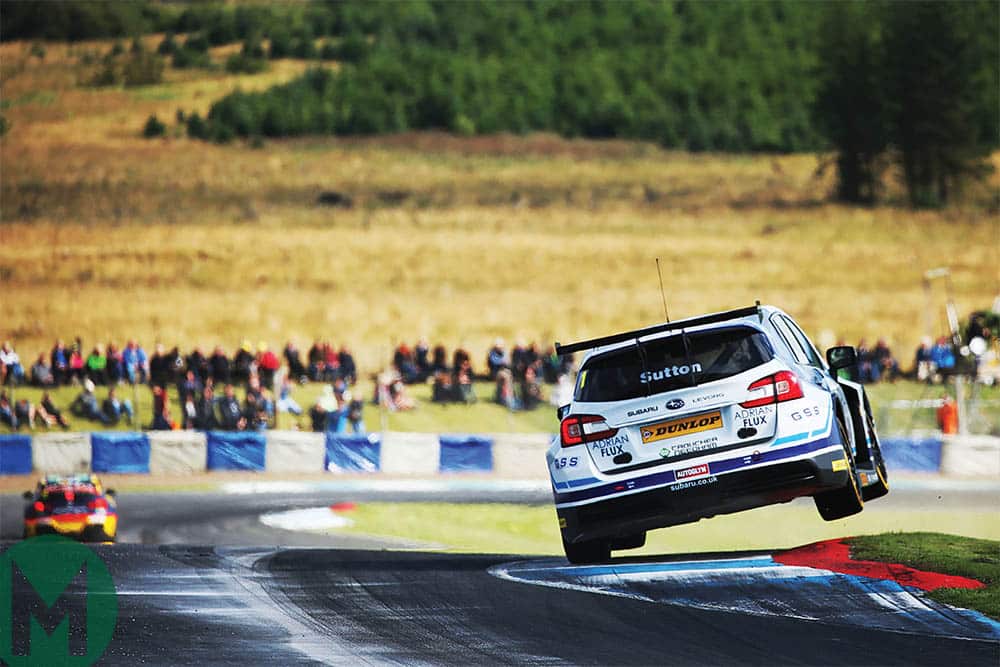 Ash Sutton clunks the Knockhill kerbs during an initially difficult British Touring Car title defence for Subaru