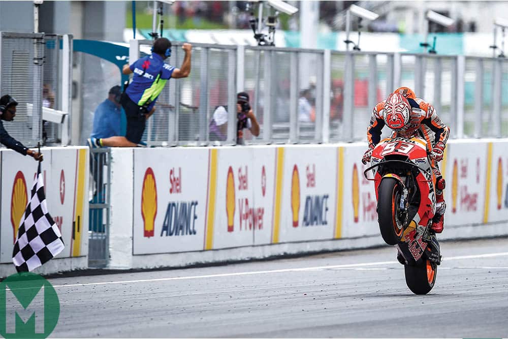 Marc Márquez continued to work his way into MotoGP’s record books, securing his fifth world title. Here he takes victory at Sepang, Malaysia