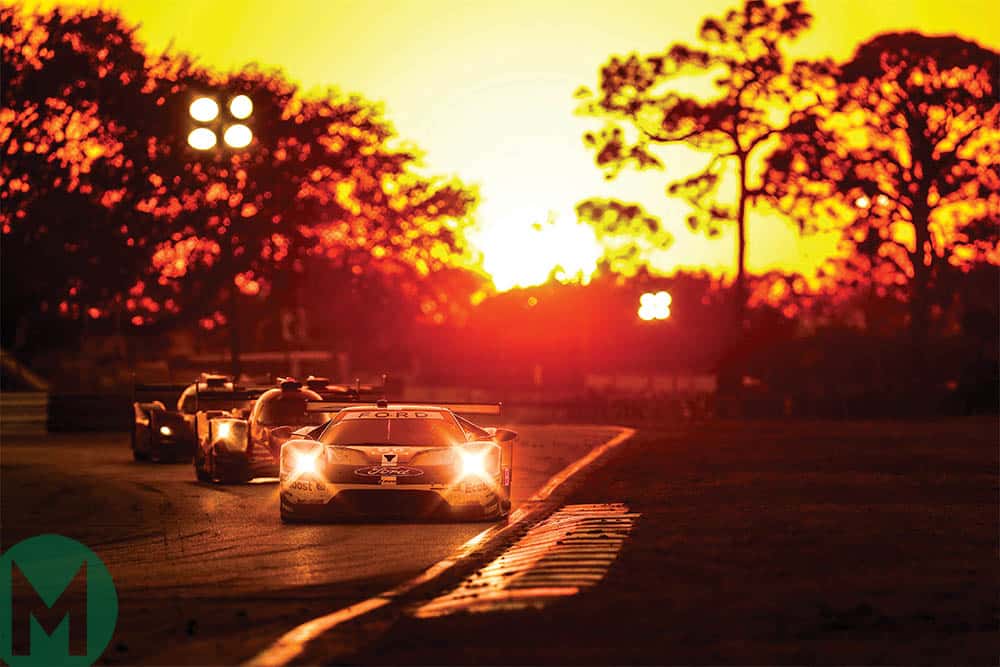 Sun sets on the Sebring 12 Hours as Ford’s GT races into the night ahead of a pair of DPi machines
