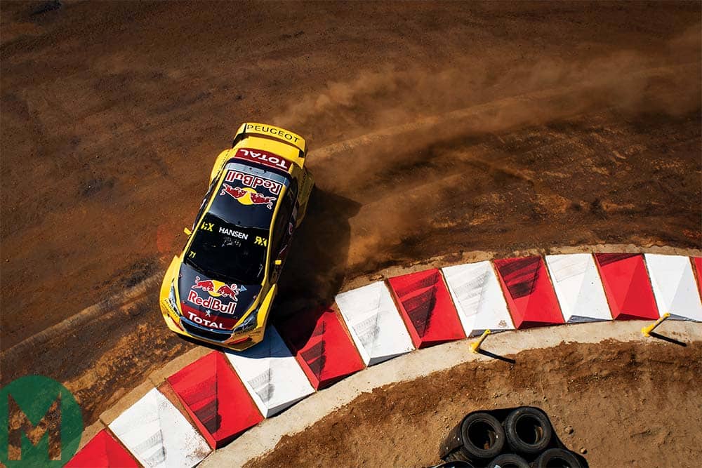Kevin Hansen slides his Peugeot 208 FIA World Rallycross challenger during the series’ visit to Cape Town
