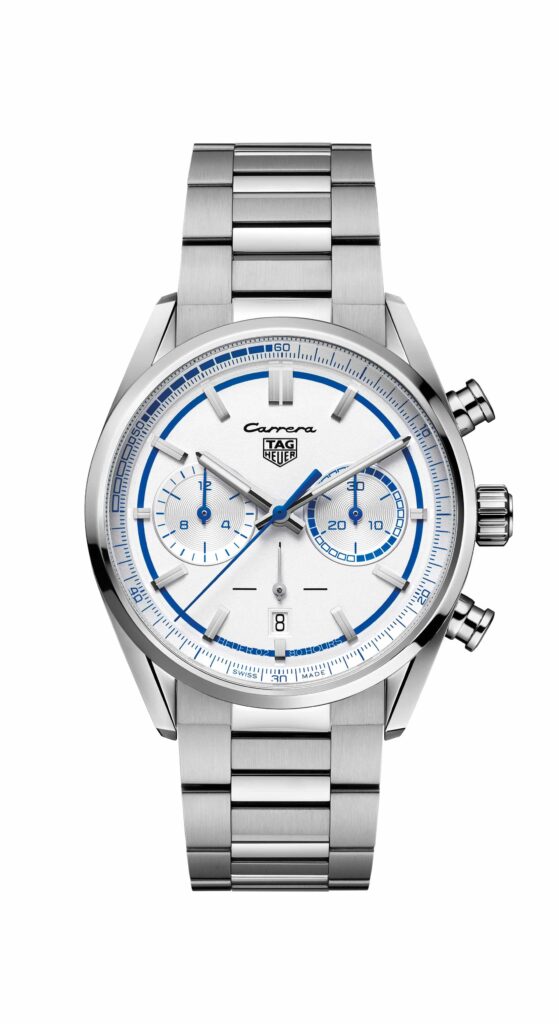 To mark the 50th anniversary of the 911 Carrera RS 2.7, Porsche and official watch partner TAG Heuer have got together to produce two special versions of the popular (and handily named) Carrera chronograph which are inspired by the car. There will be 500 in steel with white and blue dials, blue ‘Carrera’ script on the side of the case and a white and blue fabric strap as well as a steel bracelet, plus 250 rose gold versions with red detailing and red leather straps. Both feature winding rotors in the shape of an RS steering wheel.