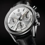 TAG Heuer is marking 160 years since Heuer’s founding with a special version of one of its Carrera driver’s watch, launched in 1964. Jack Heuer, great-grandson of Heuer founder Edouard, created the Carrera after learning of the Carrera Panamericana. ‘Carrera Silver Limited Edition’ combines the silver dial design and vintage original ‘Heuer’ logo with the brand’s latest Heuer 02 movement, which is thinner, more accurate and has an 80-hour power reserve. 1860 examples go on sale in June.