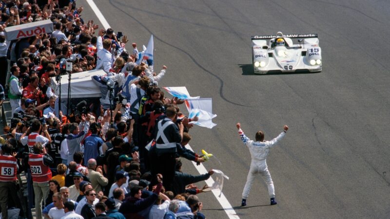 BMW’s safety margin disappeared in the 21st hour with a problem of the freakish kind. The top of a rear damper wound itself off, the corner sat down in the Porsche Curves and Lehto headed for the wall. It didn’t help that part of the front anti-rollbar mechanism fell down as the front rose and jammed the throttle open. The BMW was out of the race on the spot.