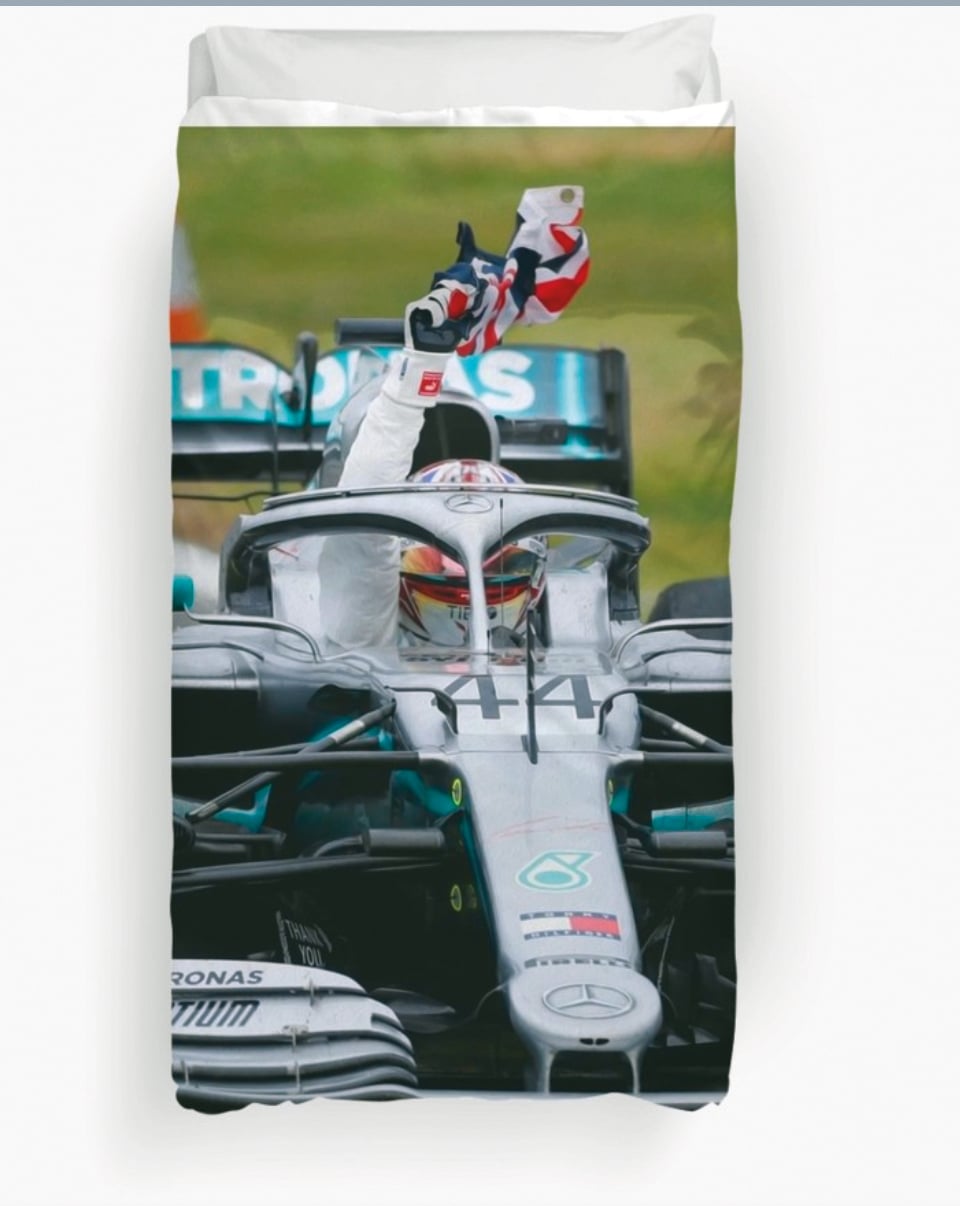 There’s a huge array of designs on Redbubble. But how about a shot of Lewis celebrating his sixth British GP win in 2019?