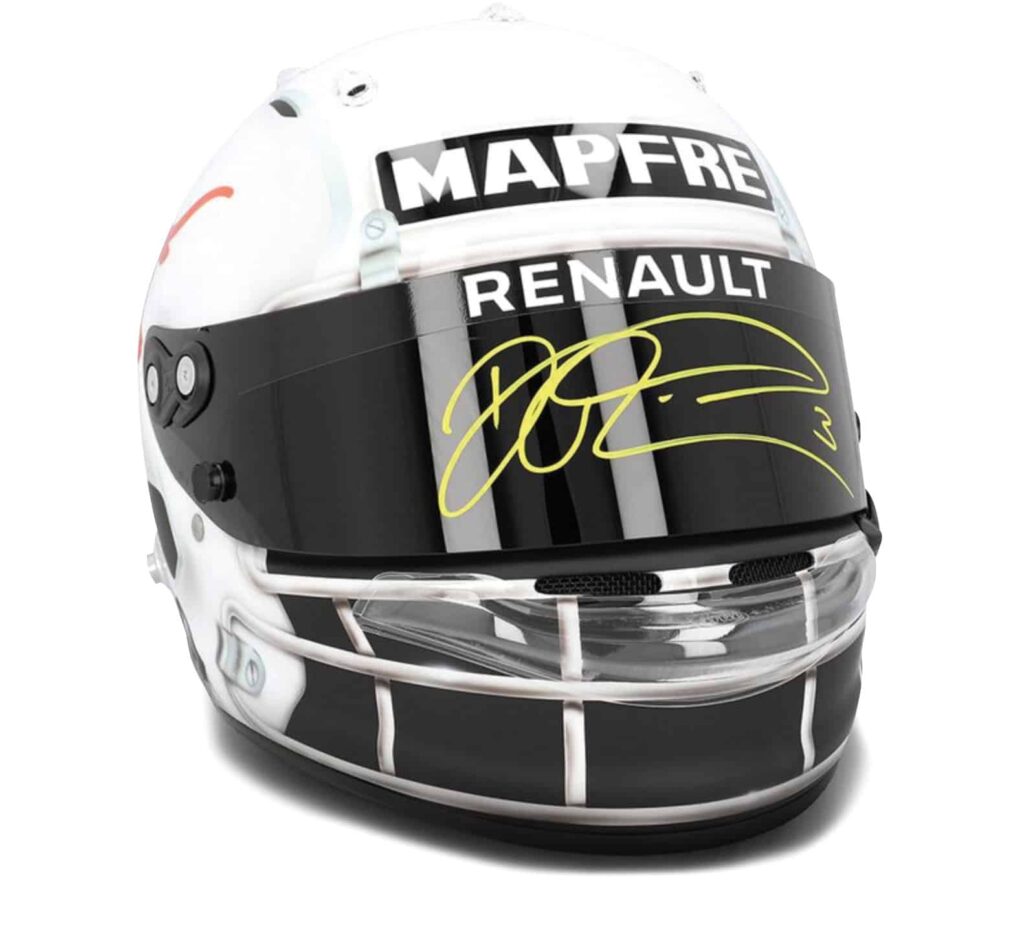 Cue Ricciardo: “I just love Texas. I fell in love with the place when we first visited. I went to see one of the Longhorns’ games [in 2018], and it was just an awesome experience, so I thought why not tip my hat to them?” And so, he did tip his hat. Sort of… Limited to just two examples, each has been hand-signed by Ricciardo across the visor and comes with a certificate of authenticity.