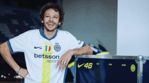 A lifelong fan of the Nerazzurri, Valentino Rossi marked his 46th birthday with this Inter Milan collab for a special edition away kit, worn by the team at the end of last season. It bears Rossi’s signature sun/moon yellow pattern, plus smatterings of 46s. £76.13, store.inter.it