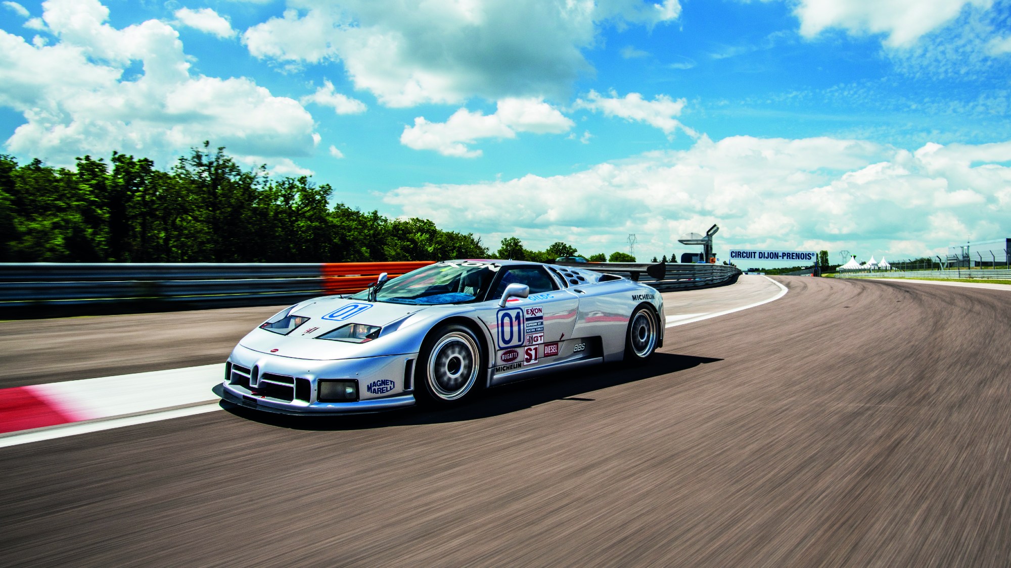 It’s a glorious day at Dijon- Prenois, the French Grand Prix’s former home that sweeps through the Burgundy countryside. Formula 1 has not raced here since 1984, but the venue remains very active and retains a significant but perhaps overlooked distinction: 25 years ago, this is where Bugatti made its final appearance in contemporary motor sport with the car you see here, an EB 110 SC (Sport Competizione) entered by the Monaco Racing Team for the Two Hours of Dijon.