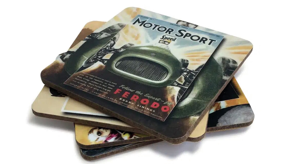 Add some pizazz to your coffee table or work desk with this set of four laminated vinyl and cork coasters, 10cm x 10cm, each depicting a classic cover of your favourite monthly motoring mag. £12.99