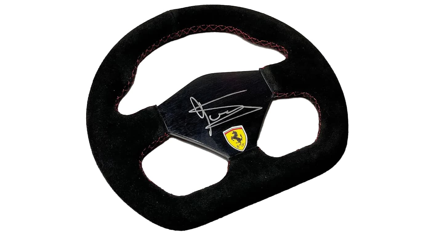 In the market for something to commemorate one of the more overlooked Formula 1 champions? Look no further than this signed piece celebrating 1979 world-beater Jody Scheckter. The South African lifted his sole title with Ferrari aboard the 312T and is still the only driver from Africa to achieve world champion status. Full-size wheel; alcantara trim. £199.95