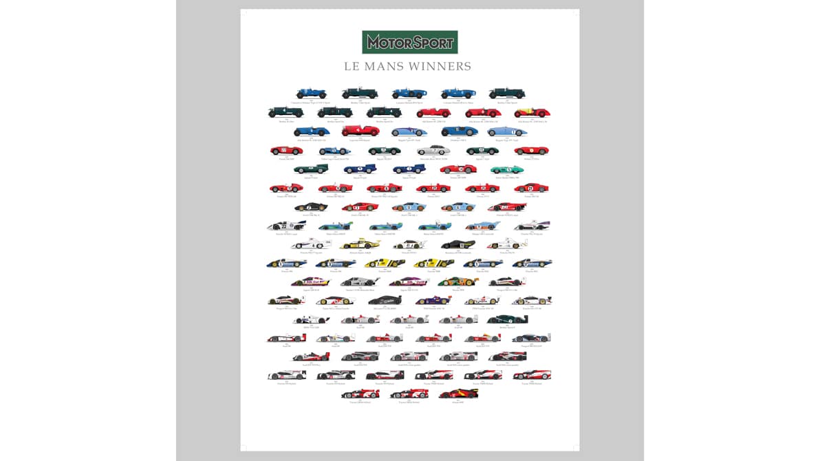 We’ve all been there, halfway through reciting out loud the Le Mans winners list and we go blank at 1975… of course it was Derek Bell and Jacky Ickx aboard a Mirage-Cosworth GR8… duuuuh! Quick tip, our poster is the perfect cheat code, listing every winner of the race across its first 100 years. You’ll never again miss a beat. Now, who won in 2024 again? £10