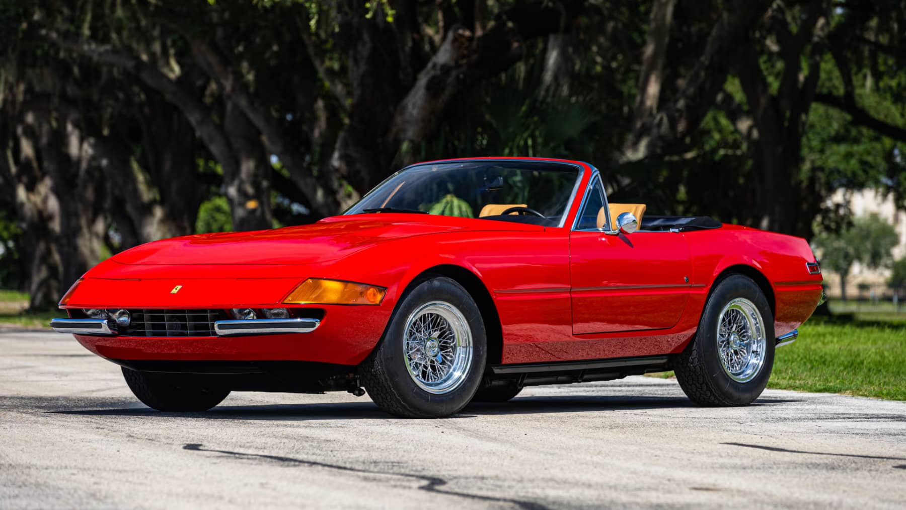 Among the star attractions at Mecum’s Monterey 2025 sale was a factory-built Ferrari 365 GTB/4 Daytona Spider, one of just 122 produced between 1969 and 1973.