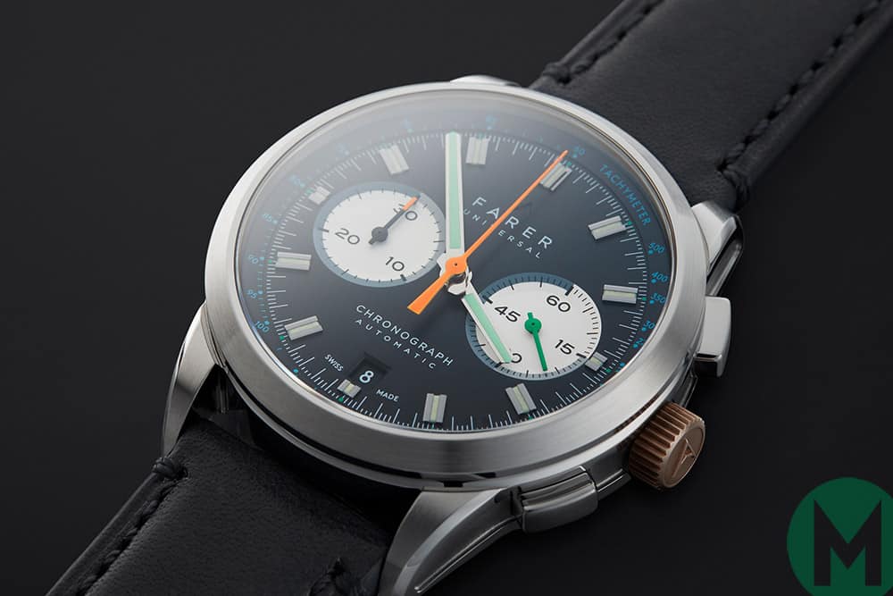 Every offering in the range is designed at Farer’s London studio, with production being entrusted to one of Switzerland’s leading manufacturers – Roventa-Henex – that operates under the radar to produce watches for some of the biggest brands.