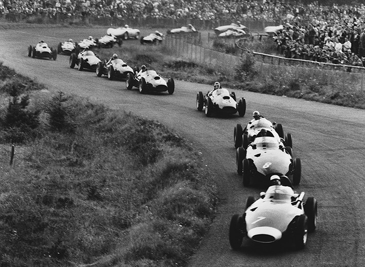 One of Tony Brooks’s finest days in a racing car, but also an occasion forever overshadowed by the loss of Peter Collins, who crashed fatally during a three-way battle for the lead – right in front of his Ferrari team-mate Mike Hawthorn.