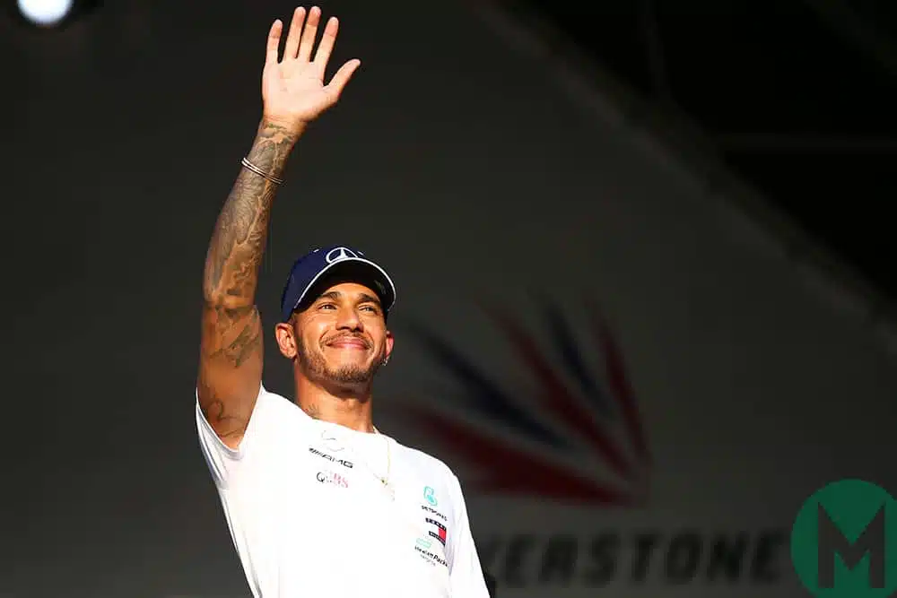 Lewis Hamilton waves at the crowd in the 2018 British Grand Prix at Silverstone Photo: Motorsport Images
