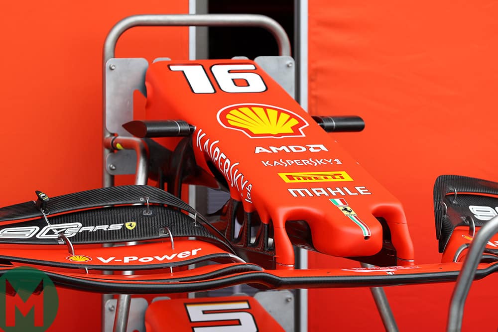 Ferrari’s older-spec nose (left) and new ‘cape’ version (right) Photo: Motorsport Images