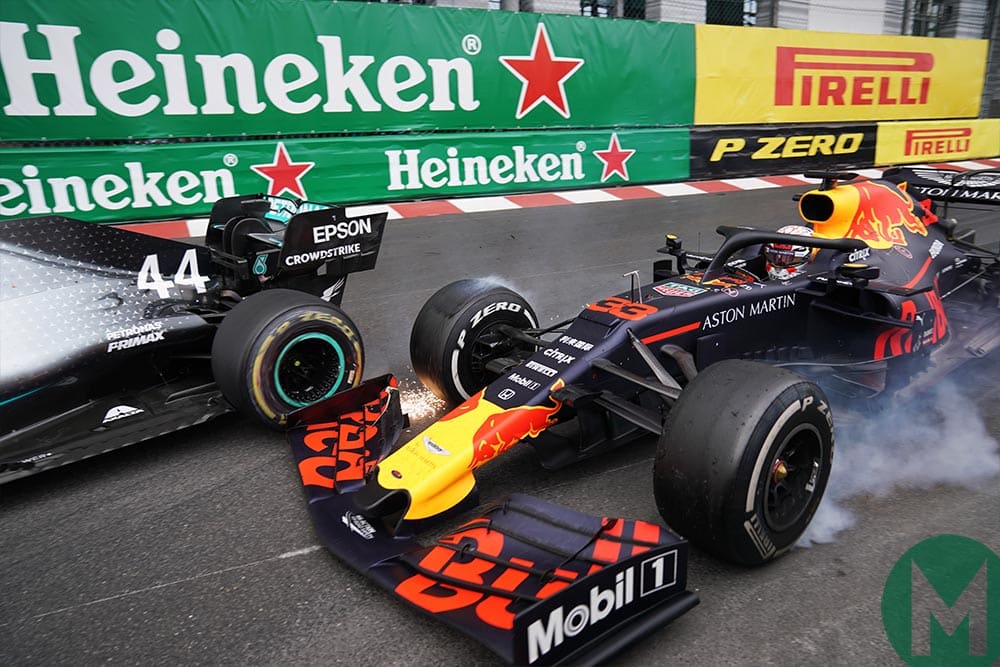Ten laps from the end, Red Bull gave permission for Verstappen to run a higher engine mode (mode 7) to the end. Mercedes gave Hamilton more power in response. The final stages of the chase played out. With two laps to go Verstappen made a late lunge down the inside into the harbour chicane. Hamilton was already turning in but was able to open out the steering just enough to minimise the hit. He was forced to miss the track but stayed ahead. That was the last of it. Two laps later Hamilton was able to dedicate his 77th grand prix win to Niki Lauda and to meet a different Prince and Princess to those who greeted Lauda after his 1975 and ’76 victories here.