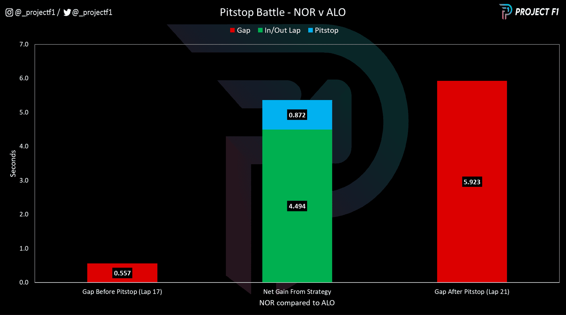 As Chart 3 above indicates, the overcut did not work at all. In fact, the decision to stay out longer was extremely painful, with Norris losing over 5 seconds in race time – with less than a 1sec of it being attributed to a slower pitstop compared to Alonso.