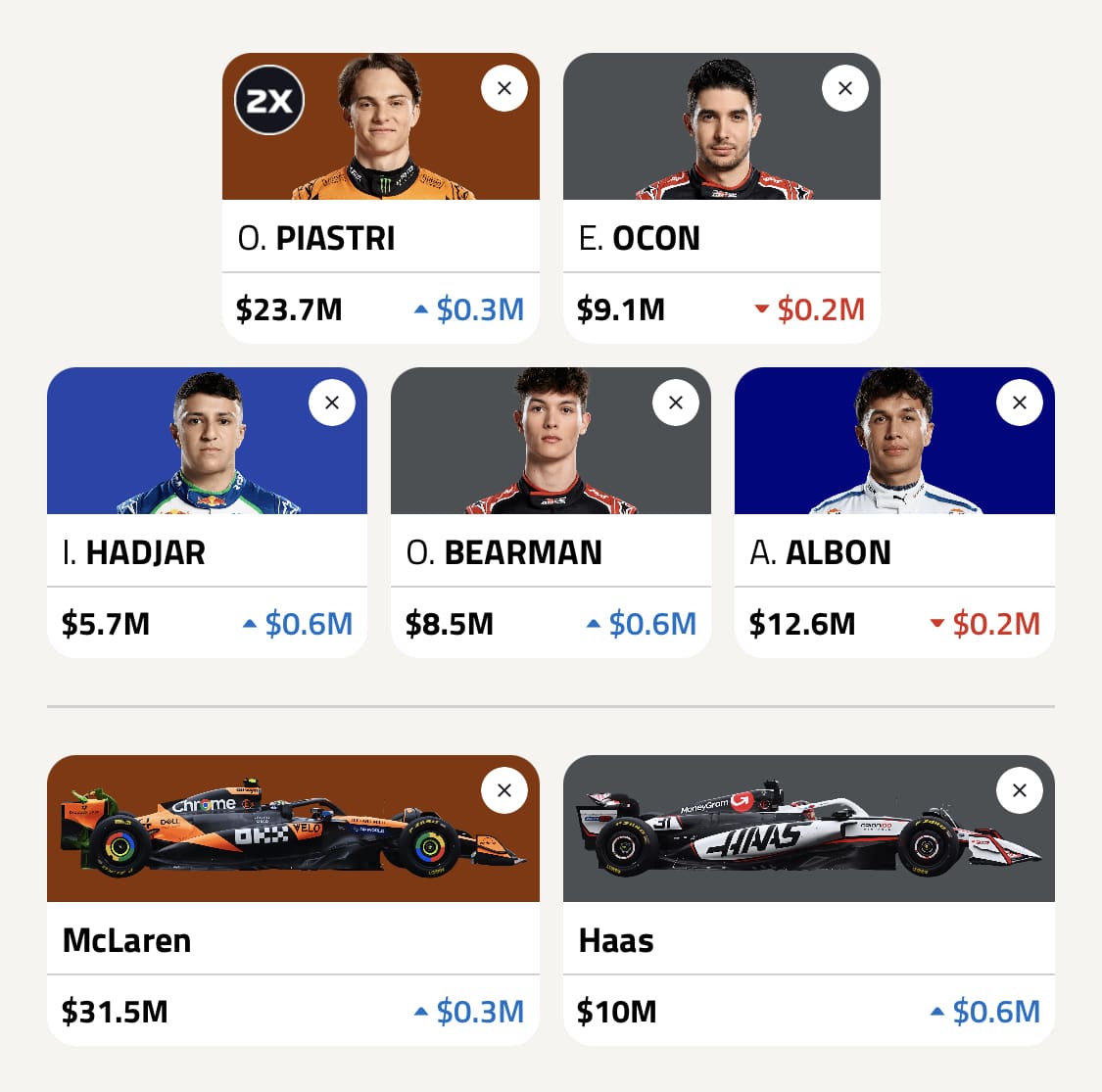 To make it work you’d have to get rid of assets like Albon and Bearman ($12.6m) and Ocon ($9.1m) for Doohan ($5m) and Bortoleto ($4.5m). We’d give it a couple more races before opting for this slightly more ‘out there’ strategy.