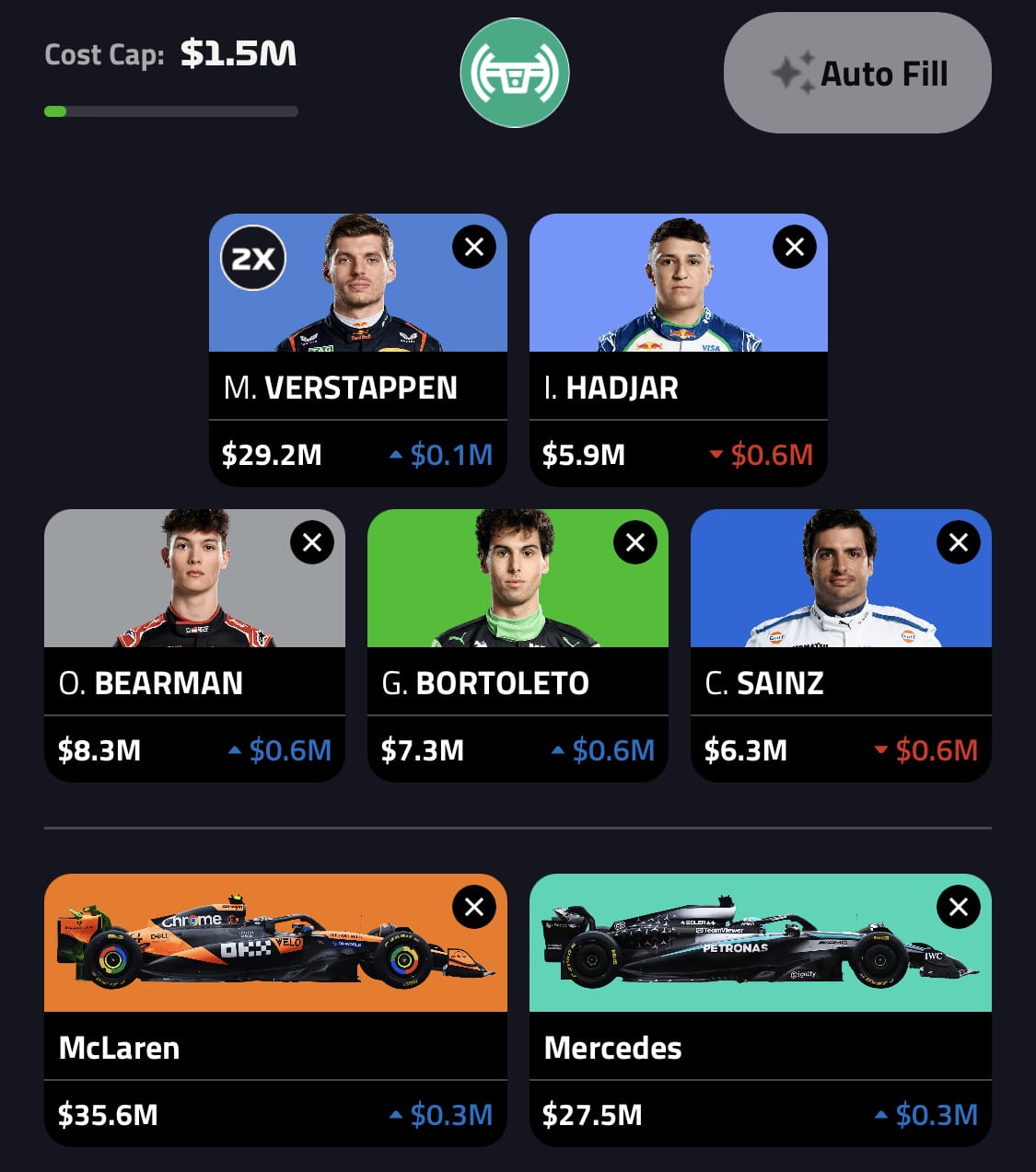 Ollie Bearman ($8.3m) put in the performance of his career to come home fourth in Mexico, and could still plausibly outscore ‘Big Four’ drivers Kimi Antonelli and Yuki Tsunoda in F1 Fantasy points terms. More heroics could be the result in Brazil, so get the Haas man in.
