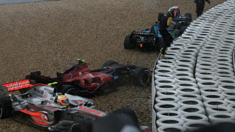 Hamilton made an early switch to dry Bridgestones – rather prematurely, a decision that would help to keep him out of the points for the first time in his F1 career – but the rest waited another five or six laps and Felipe Massa emerged as leader after the tyre stops, with Fernando Alonso’s McLaren on his tail.