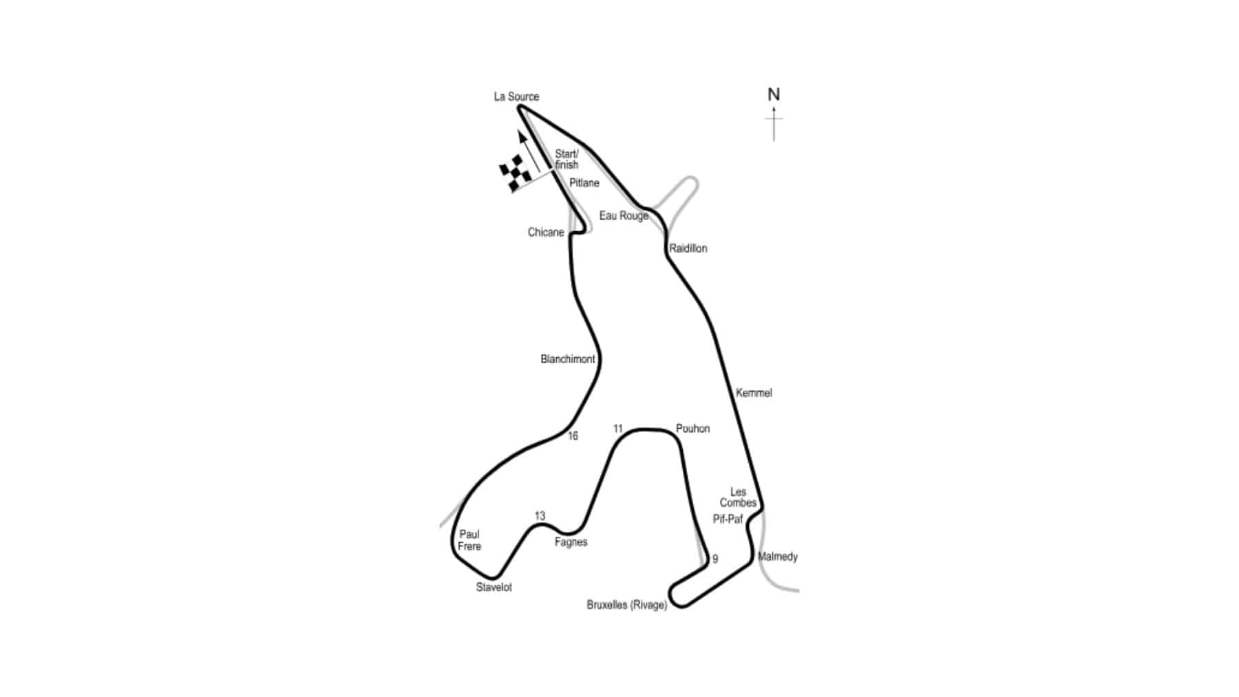 Raidillon and Eau Rouge were extensively reprofiled. Gravel traps were reintroduced and expanded at multiple corners – La Source, Les Combes, Pouhon, Stavelot, and Blanchimont – to slow down out-of-control vehicles more effectively than tarmac run-offs.