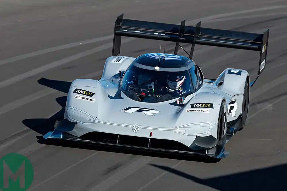 VW broke the overall Pikes Peak record with its electric I.D. R in 2018, setting a time of 7min 57.148sec up the Colorado hillclimb.