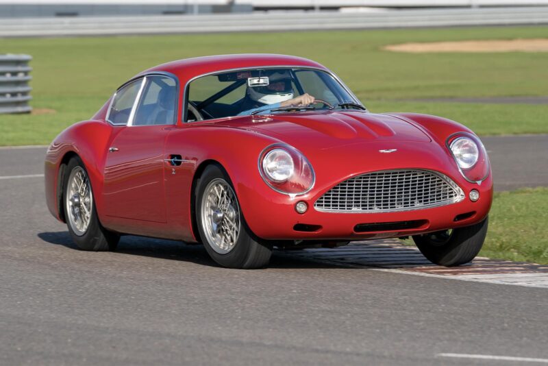 Here are Motor Sport’s exclusive shots as the DB4 GT Zagato continuation it’s wrestled around the track at Silverstone.