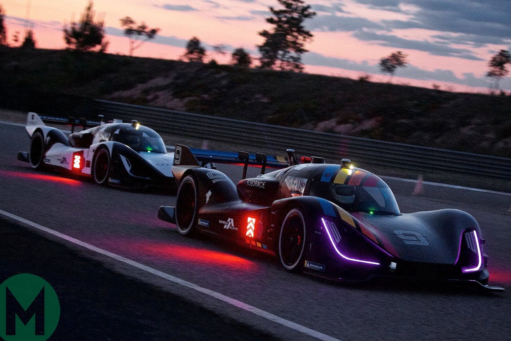 The electric racers, both based on a Ginetta LMP1 chassis, duelled at dusk on the Monteblanco circuit on Spain in the first of several test competitions that are intended to lead to a full international campaign in 2021.