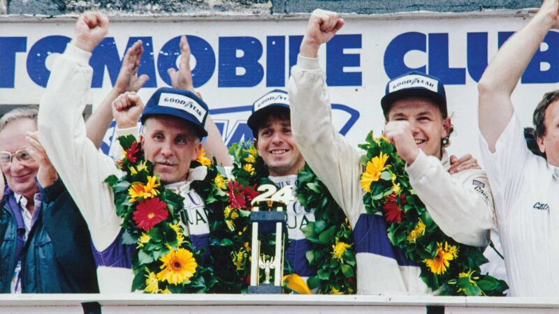 When 1990 rolled around, bad luck almost haunted Brundle again. The XJR-12 he shared with David Leslie and Alain Ferté led but, at 07:00hrs on Sunday, a drive belt slipped off the water pump pulley and that was that. Except, it wasn’t.
