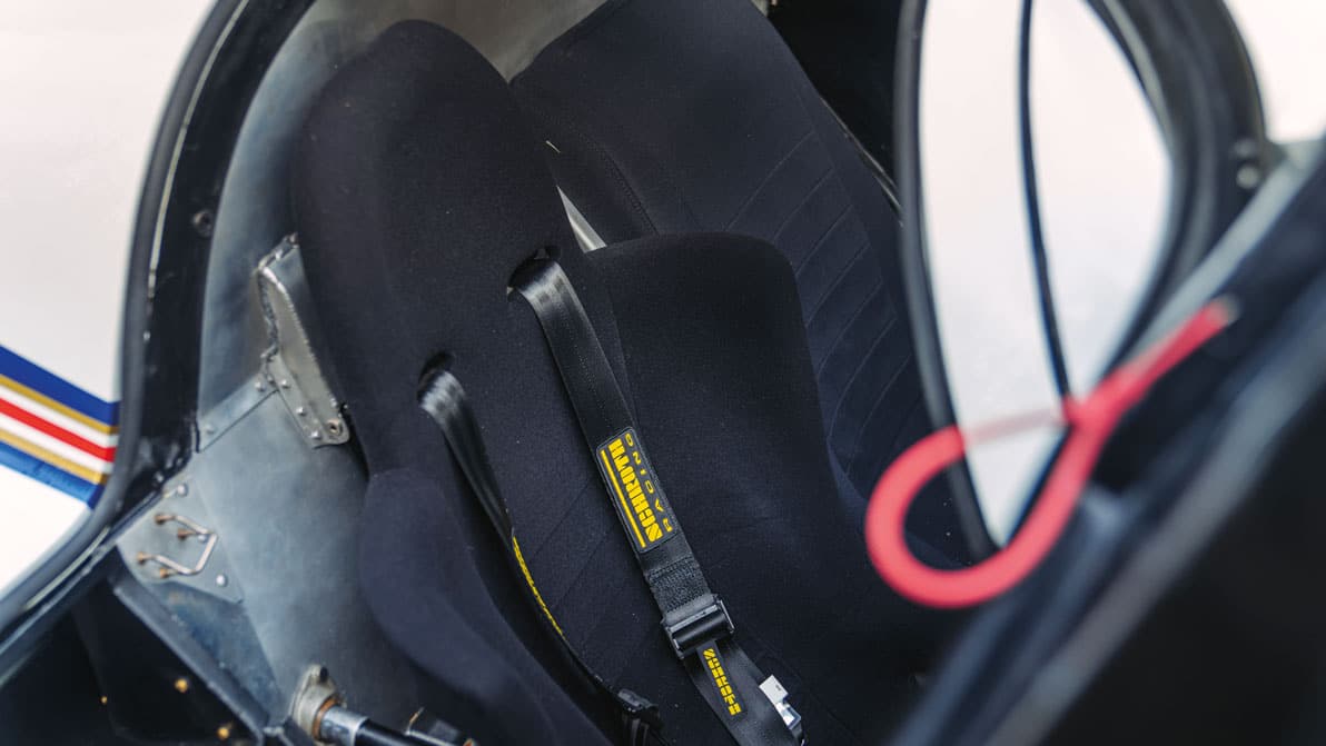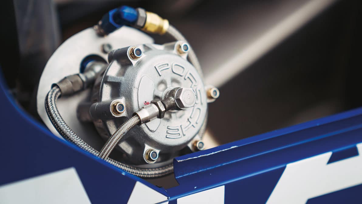 The start procedure could scarcely be more simple: turn the key. You don’t even need to press a button. Keep your foot off the throttle and wait for the flat six to burst angrily into life. Which it does, and then idles as easily (albeit rather more noisily) as a 911 SC. The big difference between this engine and that of even a 911 Turbo of this age is that the race motor needed greater efficiency than could be achieved with single cam, two-valve heads, but it would not be possible to use a twin cam, four-valve layout with air-cooling, so this Porsche is cooled by both air and water, the former for the block, the latter for the heads. It’s capable of producing around 650bhp, which was already probably slightly more than the rule makers had envisaged.