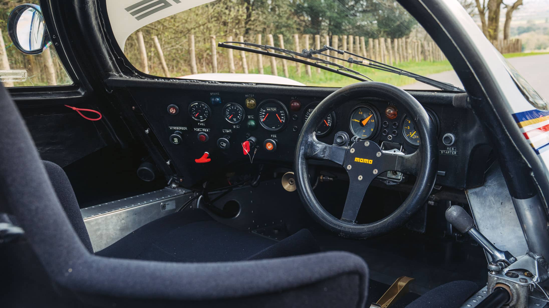 To me the outside still looks modern and beautiful, but in here, frankly, it’s all a bit of a mess. There are buttons, switches and dials I recognise from period 911 road cars, bits of Dymo tape labelling gauges, a leatherbound Momo wheel with a radio transmit button attached and nothing else. I can see where the edges of that wheel have been worn smooth and discoloured by Jacky and Derek’s gloves as they wrestled with this car for a day and night to bring it home at an average speed including all stops of over 126mph. Makes you think, doesn’t it?