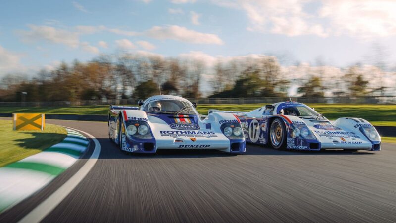 Both cars are in their classic Rothmans liveries; the 956 has been untouched since its single outing at Le Mans