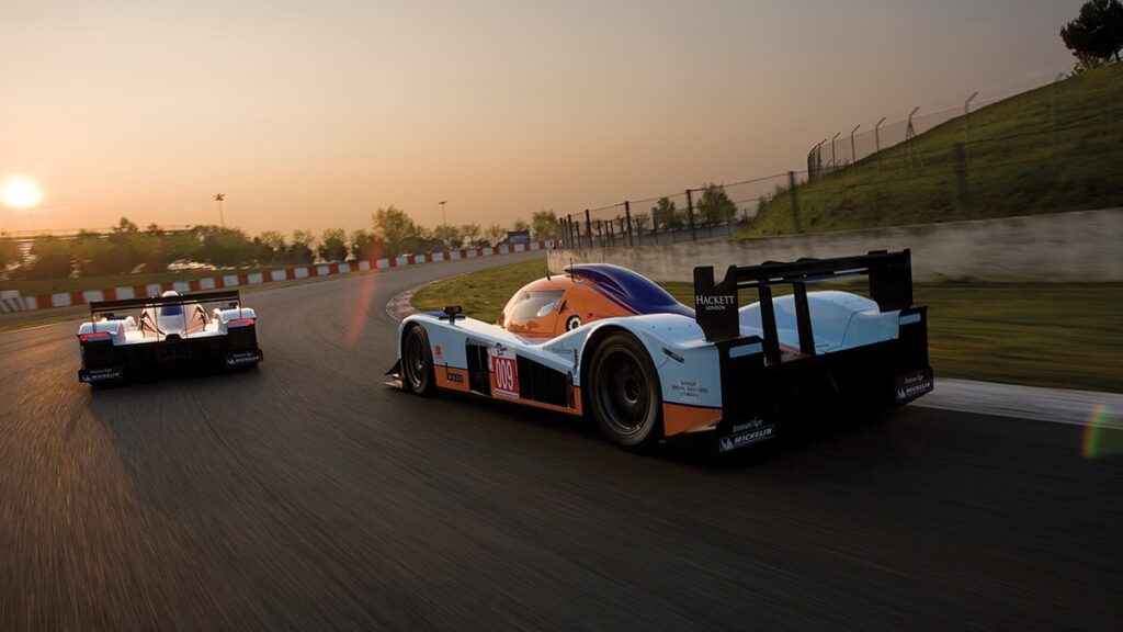 The new car will not be in the gorgeous green of the old DBR1. The 2009 edition will be decked out in the blue and orange colours of the Gulf oil company, surely one of the most evocative liveries in racing history. Maybe it’s a good omen.
