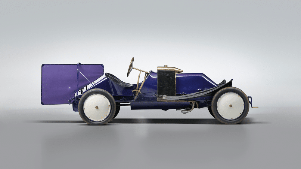 Laurin & Klement was a Prague-based constructor that operated only between 1906 and 1928, but despite its short lifespan it did leave a lasting impact on the automotive world by gradually evolving into Škoda. Only three of these twin-cylinder four-stroke machines were ever made, and this is the sole survivor. But it got more interesting after the modifications made by its first owner, Baron Leo Haan. A seasoned racer, he fitted a wooden rudder behind the tail linked to the steering, allowing the rudder to change direction with the car and provide side force, preventing skidding around turns. After some success in hillclimbs, the Baron sold it to Günther Heger, who stored it for 40 years before offering it to the Museum in 1964. Almost entirely original and unrestored aside from a light mechanical refresh. A sales note suggested rebuilding the original wooden wheels should its new owner fancy running it in anger.