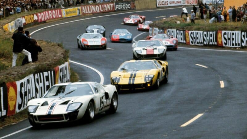 Ken Miles and Denny Hulme’s 7-litre Ford proved a star, with Miles lowering the lap record at one point. Victory would also have made Miles the first driver to win Daytona, Sebring and Le Mans in the same year