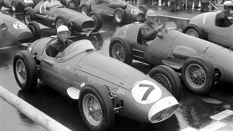 On the grid in the front row were Parnell, Flockhart, Salvadori and Collins, The second row contained Moss, Wharton and Gerard, the third row Pilette, Behra, Etancelin and Hall. Somehow Bira was at the back.